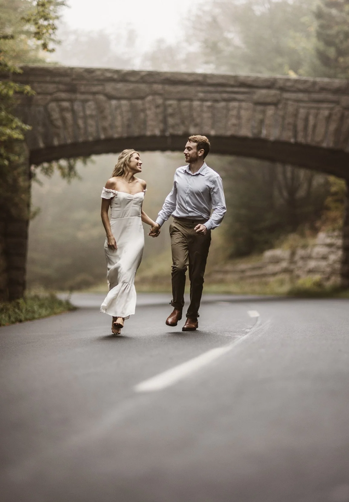 Walk hand-in-hand through evergreen forests