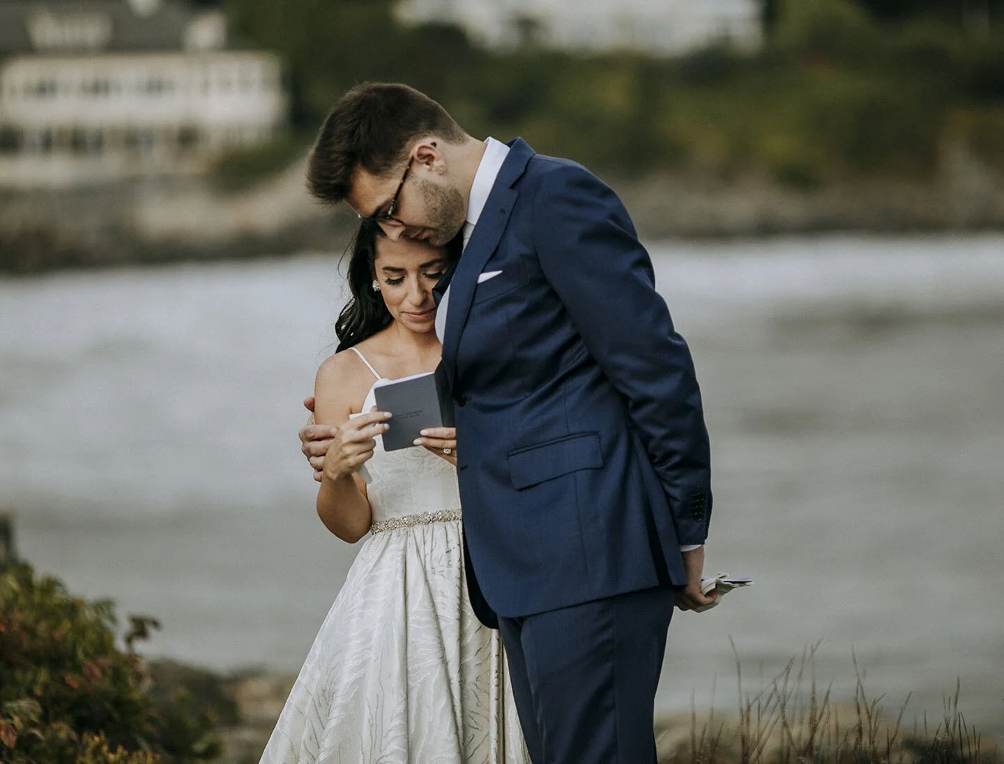 Sarah and Matt, married at a secret spot along the Maine Coast.