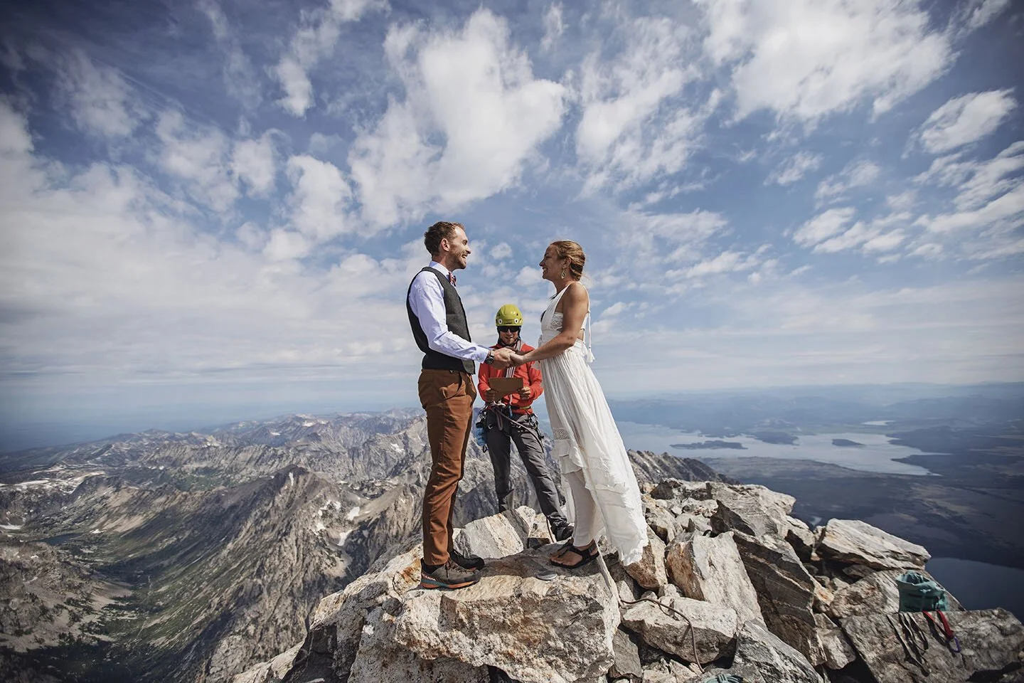 Liz and Collin get married on the summit of the Grand Teton, Jackson Hole, Wyoming.