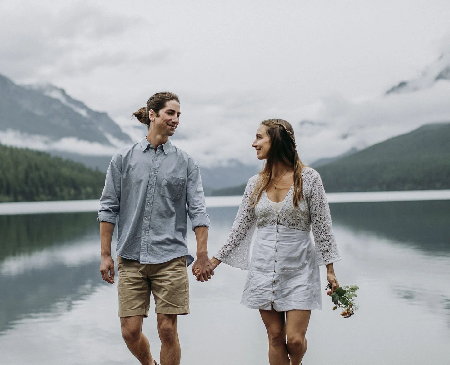 4. After photographing the wedding on the summit of the Grand Teton, I drove north to Glacier National Park, Montana to meet up with Jordyn and Sam. Originally from Maine, these two were married in the small town of Polebridge. They didn’t have a professional photographer at their ceremony so I agreed to photograph them the next day on the shore of remote Bowman Lake, far from the tourists and crowds of more popular sections of Glacier National Park. Before taking pictures, we sat on the beach, ate some lunch and drank champagne to celebrate. We watched the mists and clouds role off the mountains and over the lake. I love the informality of this shot, it speaks to who Sam and Jordyn are. The handpicked wild flowers, the wrinkles in the dress, and that loving look!