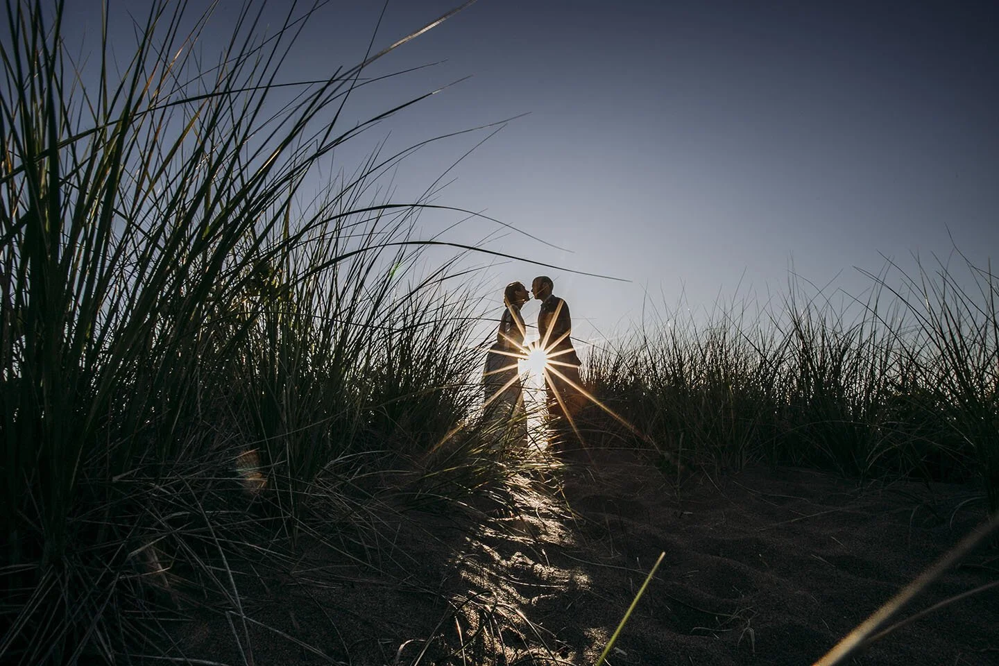 10. Sarah and Matt were married at a private location in Maine’s midcoast. After their small ceremony we walked the dunes, trails and beaches of their stunning location for almost two hours! As the sun set we found ourselves in the dune grass and I switched to a wide angle lens that I know creates a beautiful sun star at certain apertures. I was lying on my belly in the sand and the wind blew the dune grass in this beautiful arc over the couple and I was able to snap a few shots!