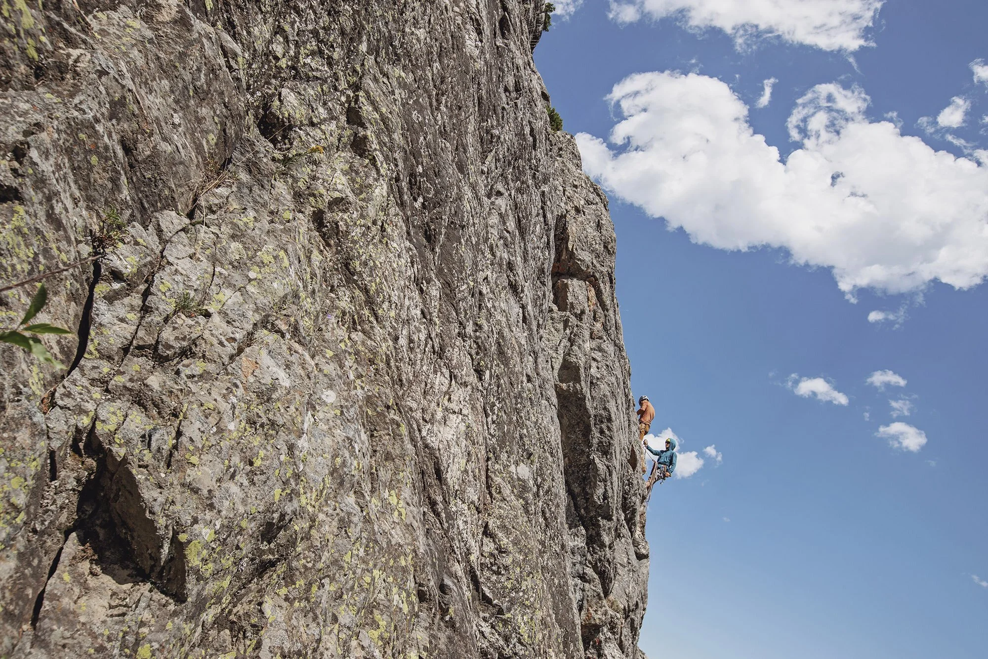 Liz climbing up to the ledge I’m tied into. The wide angle lens I selected for the climb worked well to include the climbing and the beautiful landscape behind.