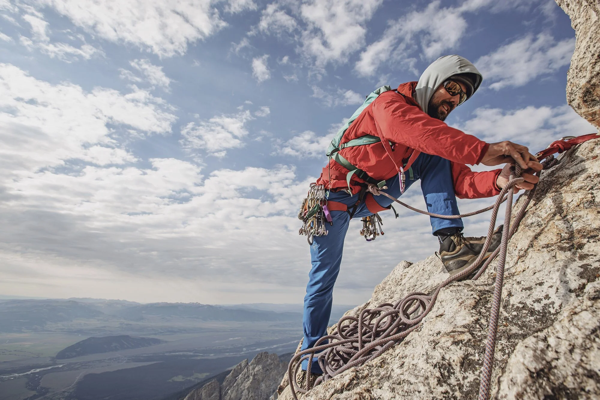 Collin climbs the last few feet of an especially scenic pitch on the Grand Teton.
